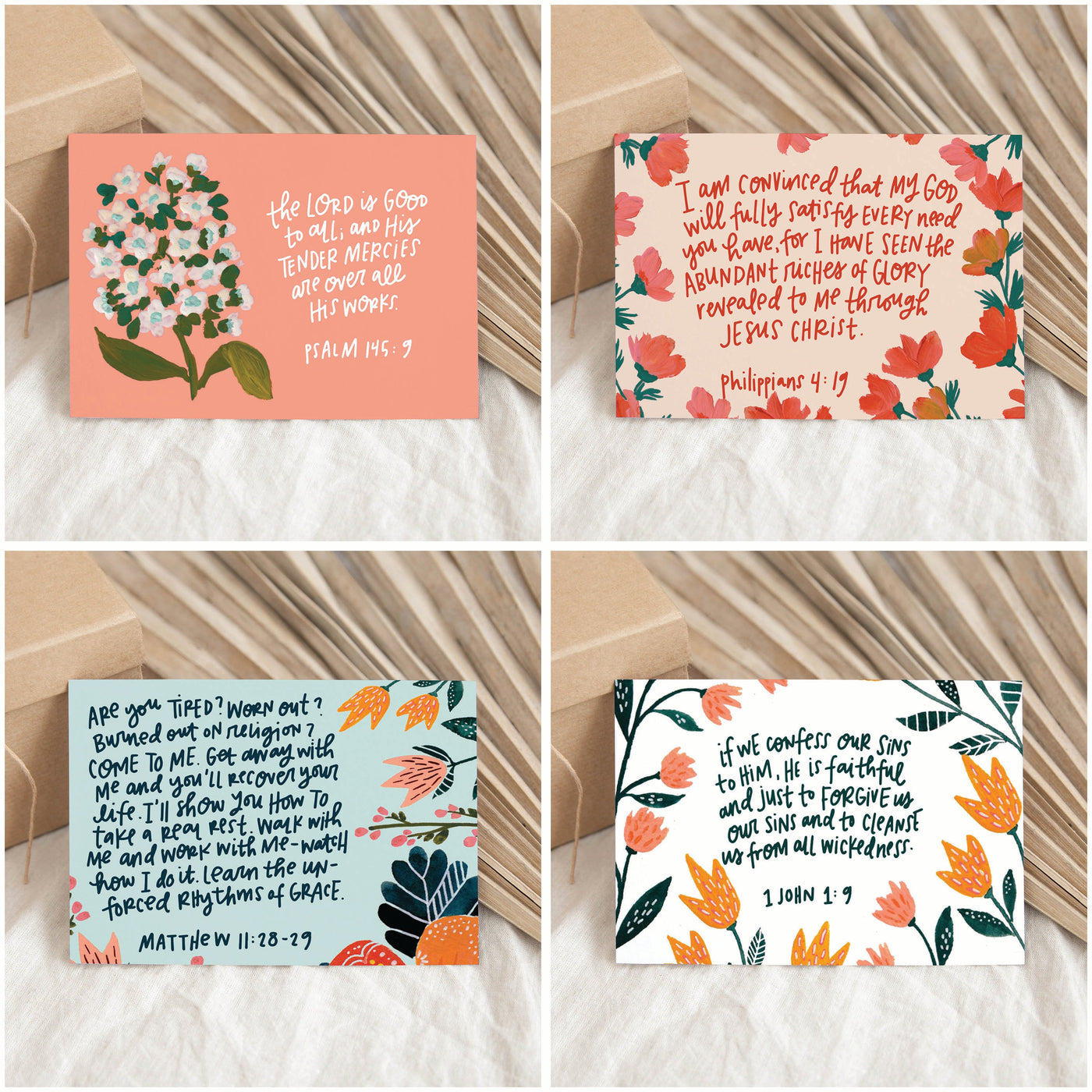 Inspire and uplift with our Bible Verse Insert Card Variety Pack, featuring four beautifully designed cards with encouraging scripture verses. Each 4" x 6" card is printed on high-quality matte cardstock, perfect for including in orders or gift packages. This variety pack includes: