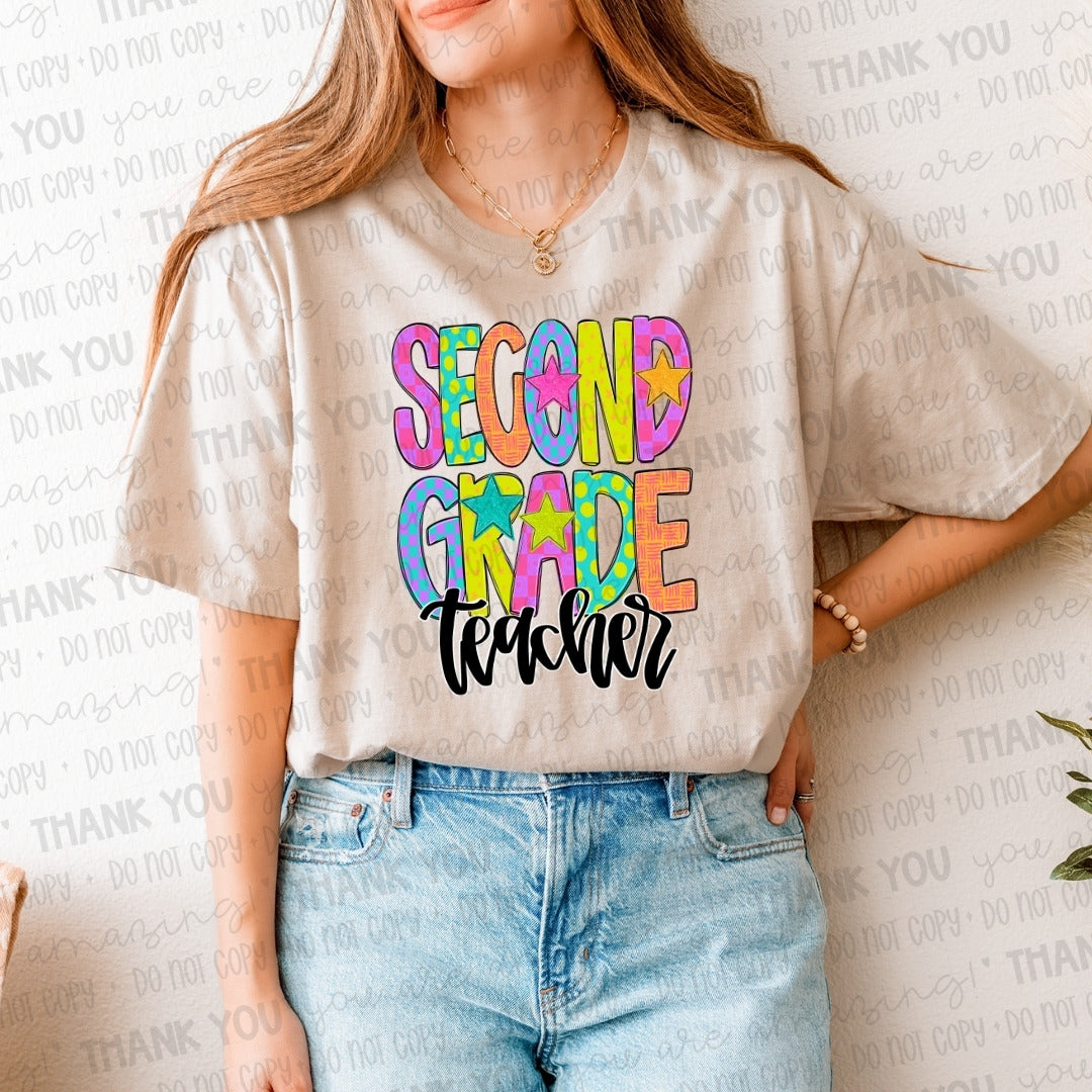 Second Grade Teacher Bright Doodles